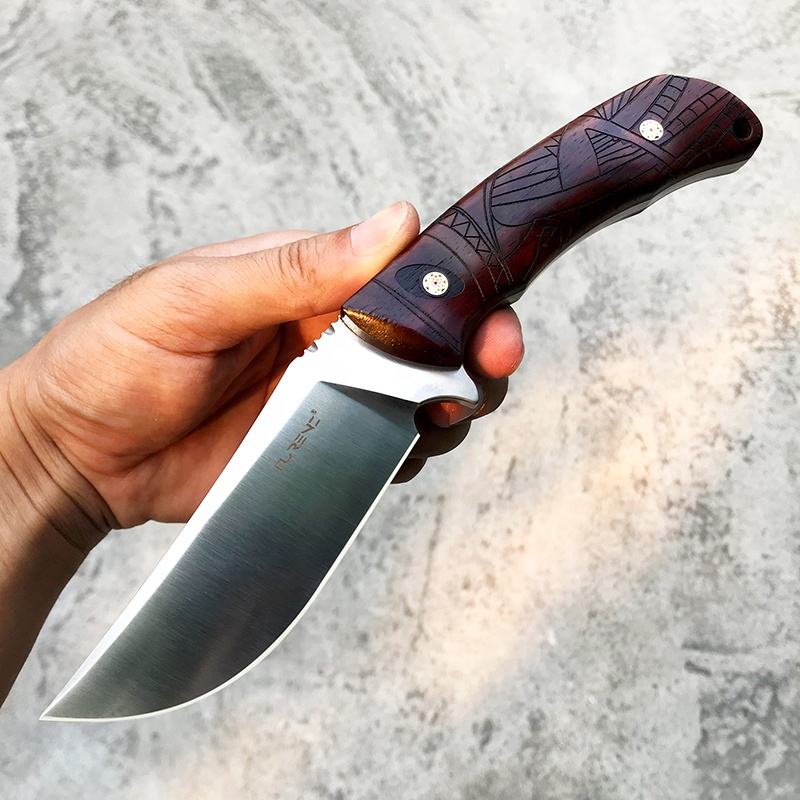 3.8Inch Outdoor Survival Tactical Fixed Blade Bowie Knives,DC53 Steel, Rosewood Handle