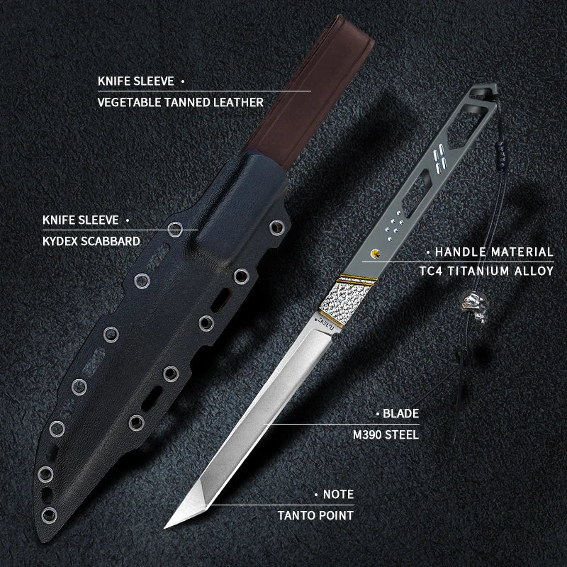 3.9 Inch Camping Outdoors Fixed Blade Knife,M390 Steel Blade,Titanium Handle