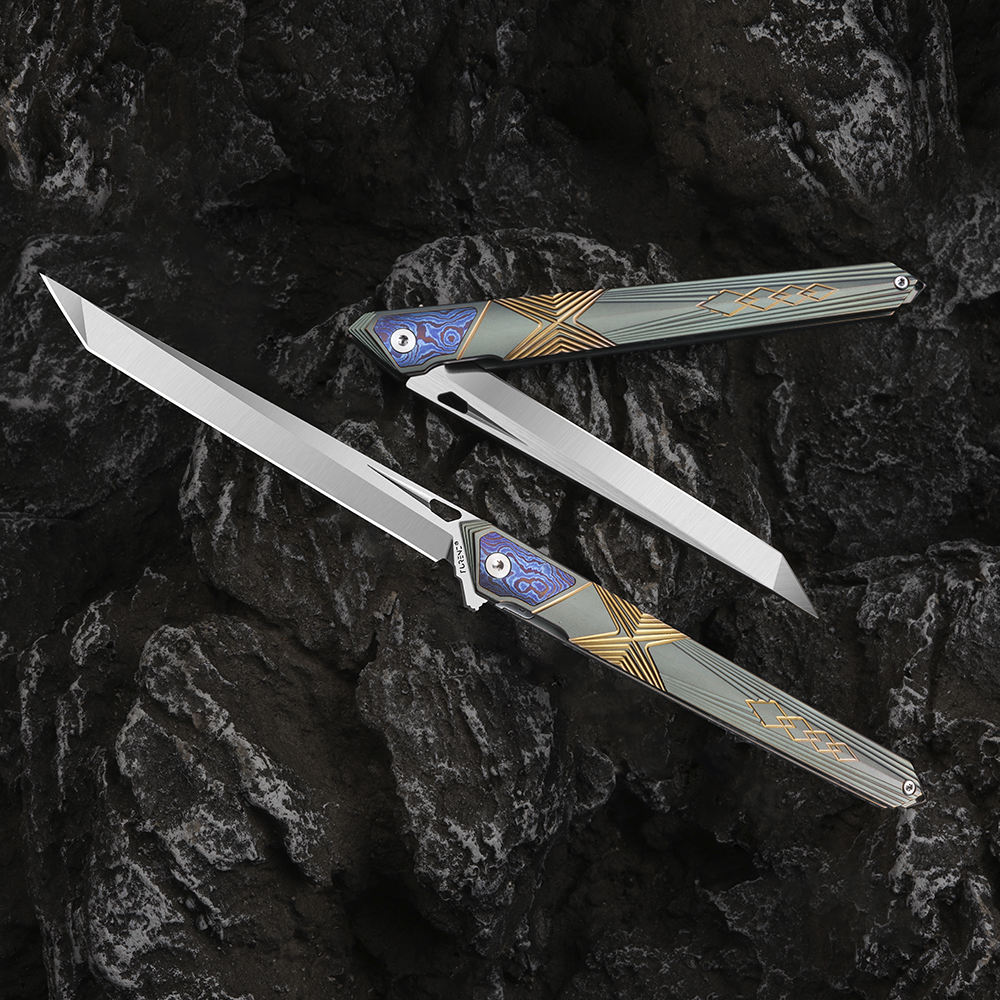 Handle material: Titanium Damascus steel with TC4 titanium shank